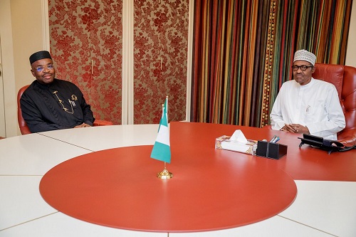 Governor Udom Emmanuel meeting with President Muhammadu Buhari at the presidential villa on Thursday