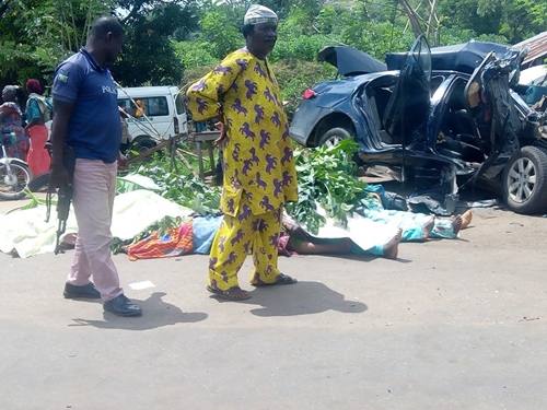 It was learnt that the accident which involved three private cars, an 18 seater commercial bus and a beer truck, was allegedly caused by policemen 'extorting' money from the motorists before the beer truck lost control after a brake failure.